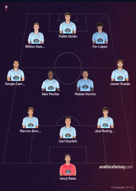 Alineación confirmada del Celta para los Octavos de Final de la Europa League: Durán, Williot y Carreira titulares