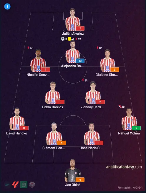 Puntuaciones confirmadas de La Liga Fantasy del partido FC Barcelona vs Atlético de Madrid